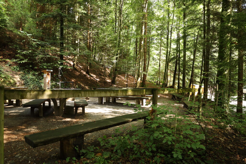 Unser offener Grillplatz bietet mit rund 50 Sitzplätzen idealen Raum für grössere Gruppen. Die sternförmig um die zentrale Feuerstelle angeordneten Tische schaffen eine gemütliche Atmosphäre für gemeinsame Erlebnisse. Bei diesem Platz verzichten wir auf ein reguläres Reservationssystem – kommen Sie einfach vorbei. Möchten Sie die gesamte Anlage jedoch exklusiv für Ihren Anlass nutzen? Dann setzen Sie sich bitte direkt mit unserer Platzaufsicht in Verbindung.